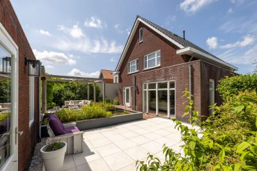 De brede en zonnige achtertuin van Niels en Sanne zit vol sfeer, met meerdere terrassen,…