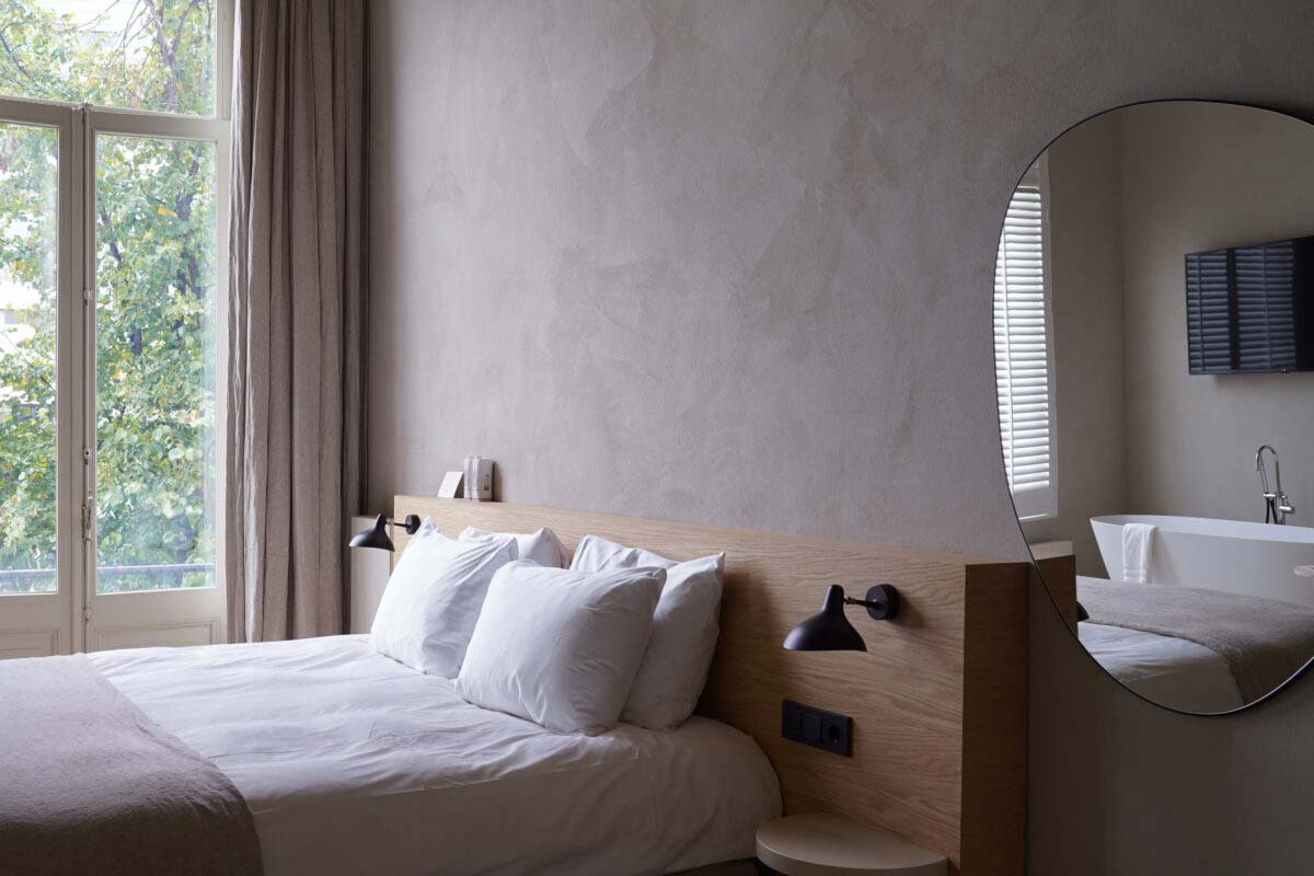 Laten we meteen beginnen met het belangrijkste meubelstuk van elke slaapkamer, dat ook het belangrijkste meubelstuk is van elke hotelkamer: het bed. Valt het je op dat je vaak meteen op het bed wilt duiken zodra je de eerste stap hebt gezet in je hotelkamer? Een belangrijke reden is omdat ze meteen in het oog springen. In plaats van alleen een saaie boxspring of bedframe, is het daarom een goed idee om een middelpunt van je bed te maken – ook omdat het de meeste ruimte inneemt in je slaapkamer.
