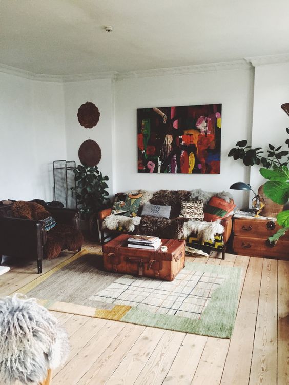 Een houten kist als salontafel geeft meteen sfeer en is bovendien superpraktisch door de extra opbergruimte.