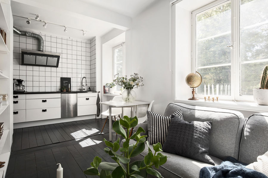 De Tiny House Trend vinden wij geweldig. Heel bijzonder om te zien hoe leuk het kan zijn om in een hele kleine woning te wonen. Een Tiny House is vaak niet groter dan 30m2. Dit kleine appartement komt daar heel dichtbij. Met een woonoppervlak van slechts 36m2 is dit appartement niet veel groter dan een Tiny House. Het is wederom een heel mooi bewijs dat klein wonen heel fijn, leuk en stijlvol kan zijn. Kijk je mee?