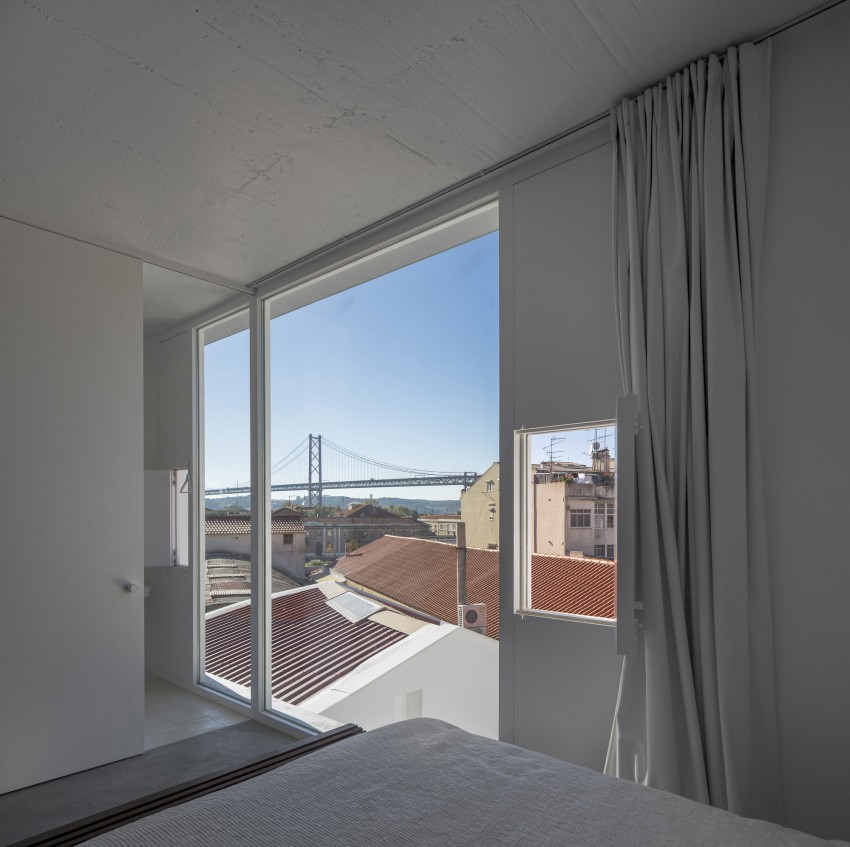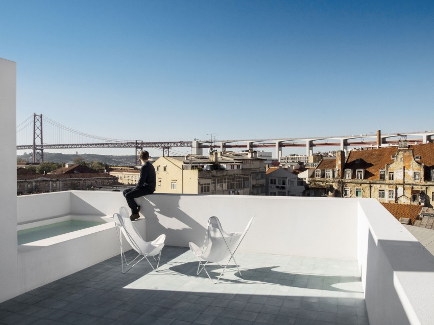Binnenkijken in een bijzondere stadswoning in Lissabon: achter een authentieke Portugese gevel ontdek je een strak en licht interieur van 350m2, met patio, maatwerk én een dakterras met uitzicht.